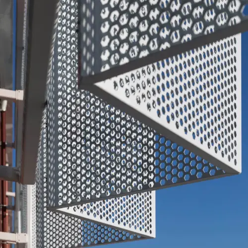 Versatile perforated metal panels designed for enhanced ventilation and aesthetic appeal. Ideal for architectural facades, partitions, and acoustic applications, these panels come in various patterns and finishes to suit any design requirement.